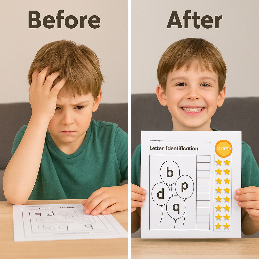 Every page is intentionally designed to tackle one of the biggest challenges for dyslexic learners: visual letter confusion. Through repetition, hands-on games, and pattern recognition, your child will start identifying tricky letters with ease.